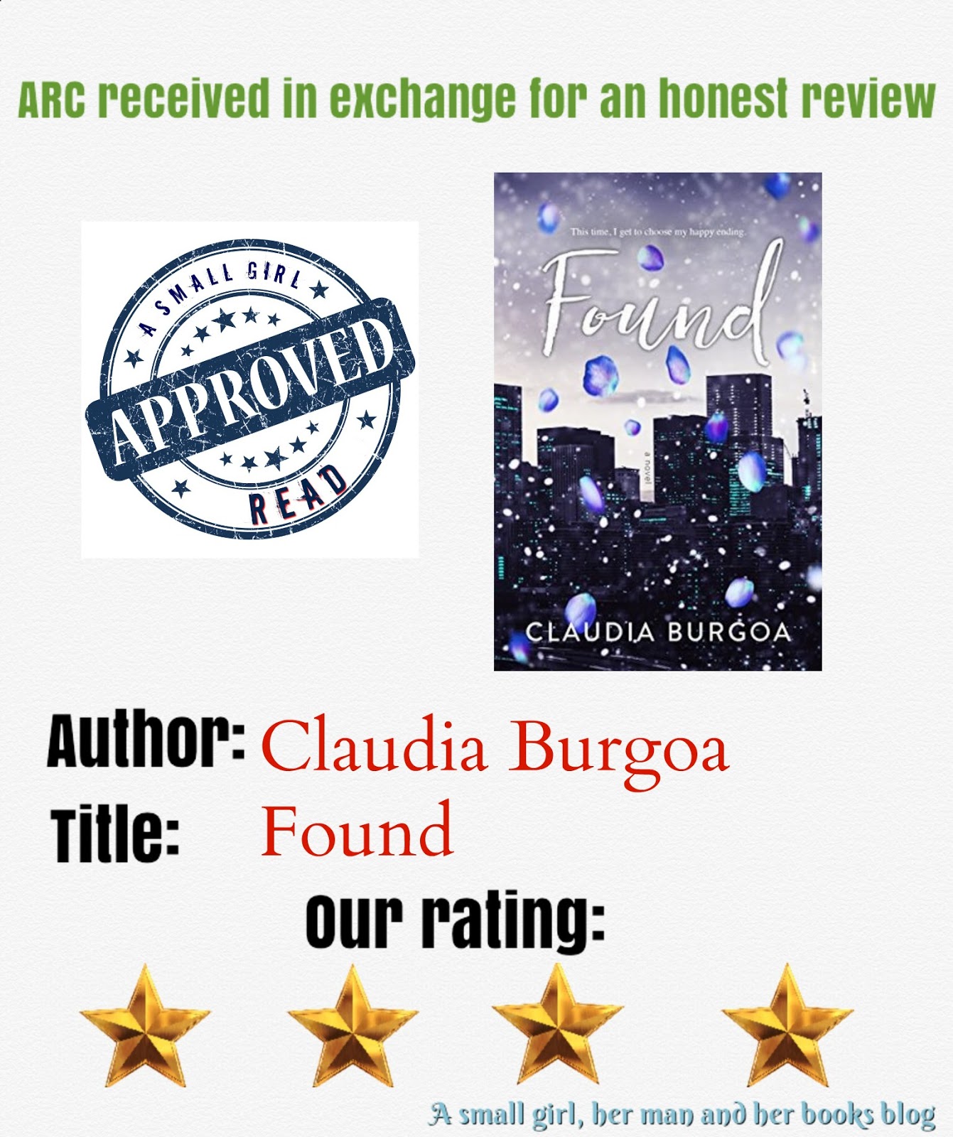 Title: Found Author: Claudia Burgoa Genre: Contemporary Romance Series or Standalone: Standalone (But does follow previous books featuring the brothers) Rating: ★★★★