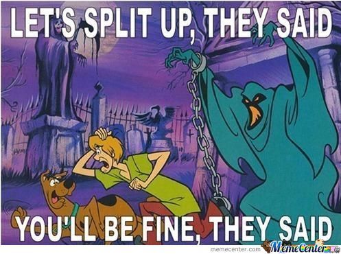 And then, exactly like Scooby-Doo, a chase would follow the splitting up almost immediately. And predictably. Over and over and over and over again.