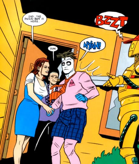 Much of what I wrote about the three earlier volumes remains true: Madman (Frank Einstein, and I can't believe how long it took me to get that pun) remains an utterly charming protagonist. Allred has toned down on his random acts of psychotic violence (here he takes it out on a robot rather than a henchman), but there's still something off about the guy. He's closer to Bugs Bunny, but he's still not 100% ready for Saturday morning.