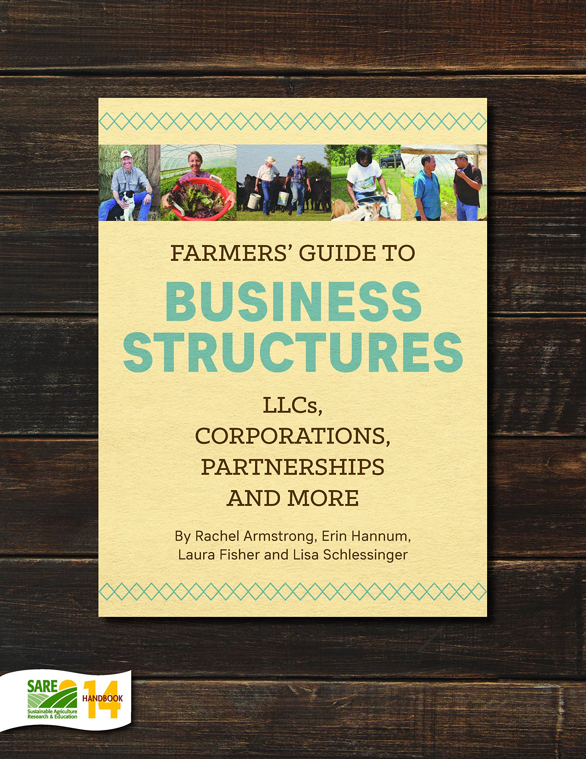 Establishing and maintaining the right business structure for your farm operation lays the foundation for a stable, resilient farm business. Forming a business structure can help manage risk by protecting the owners’ assets from the business’ liabilities; promote good business practices through accounting and decision-making protocols; raise funds from outside investors; and ease the ownership transition process. For most farmers and ranchers, choosing a structure is straightforward. Complexity arises when drafting organizing documents to support your structure of choice, or, determining how it will operate. Farmers’ Guide to Business LLCs, Corporations, Partnerships and More will support you throughout this process, from outlining the options and how to choose one, to in-depth chapters on the characteristics and requirements of each. To help you on your way, this Guide includes sample operating agreements, bylaws and other documents for C corporations and limited liability companies (LLCs). This Guide is meant to assist you but does not offer legal or financial advice for your situation. To succeed in this process, work with an attorney, accountant and others with expertise in this subject area. Farmers’ Guide to Business LLCs, Corporations, Partnerships and More was written by Farm Commons and published by SARE.