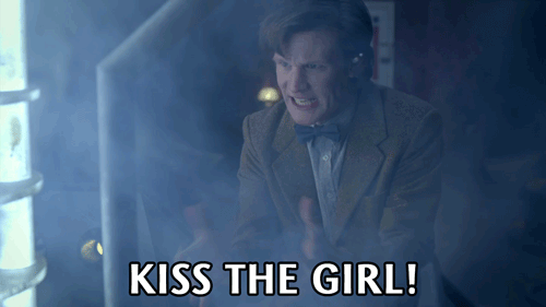 “Can I kiss the girl now?” he whispers. “You’re so cheesy. And no, you can’t kiss me. I’m in charge here. I’ll kiss you.”