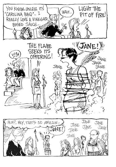 I absolutely loved how real the relationships got, even when placed in the most outrageous circumstances. I mean, come on, one strip Jane finds herself on an island filled with Amazons, and the next? She's being abducted by aliens. Sounds ridiculous, but it was still so much fun to read. There are even references to nerdy pop culture like Superman, Star Trek, and Star Wars; anyone that knows me, knows I love a good pop culture reference.
