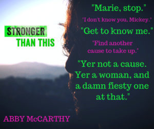 Grab those tissues and get ready for a ride that will break your heart and put it back together in the best way. Stronger Than This is a beautiful story that touches on the worst of circumstances. Raw and real there was no sugar coating in this book and it hits you right in the heart. Marie and Mickey’s story is one that pack an emotional punch. Filled with heartbreak, healing, and ultimately love. Abby McCarthy’s incredible writing had me hooked immediately.