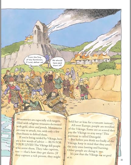 A decent, succinct look at Viking life for the young, with a proper story as well. Three children know their local travel agent has the habit of sending children through time and space to different historical periods, but still get caught and end up living with Vikings. The conceit that keeps them staying will only appeal to the very young, but the rest is fine – they hang around long enough, using the information in their magic guide book, allowing us to see that Viking life was not all raping, robbing and pillaging. The graphic novel elements, with cheesy and almost pointless bits of dialogue, don't work that well, but the edutainment from the bulk of the text is fine. Add in decent illustrations, many double-paged, and I can easily call this a success.