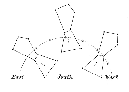 By sun, stars, inner compass, they guide themselves along, honing their mindset and delighting when it becomes a natural reliance. (Diagrams for Orion as a guide was helpful.)