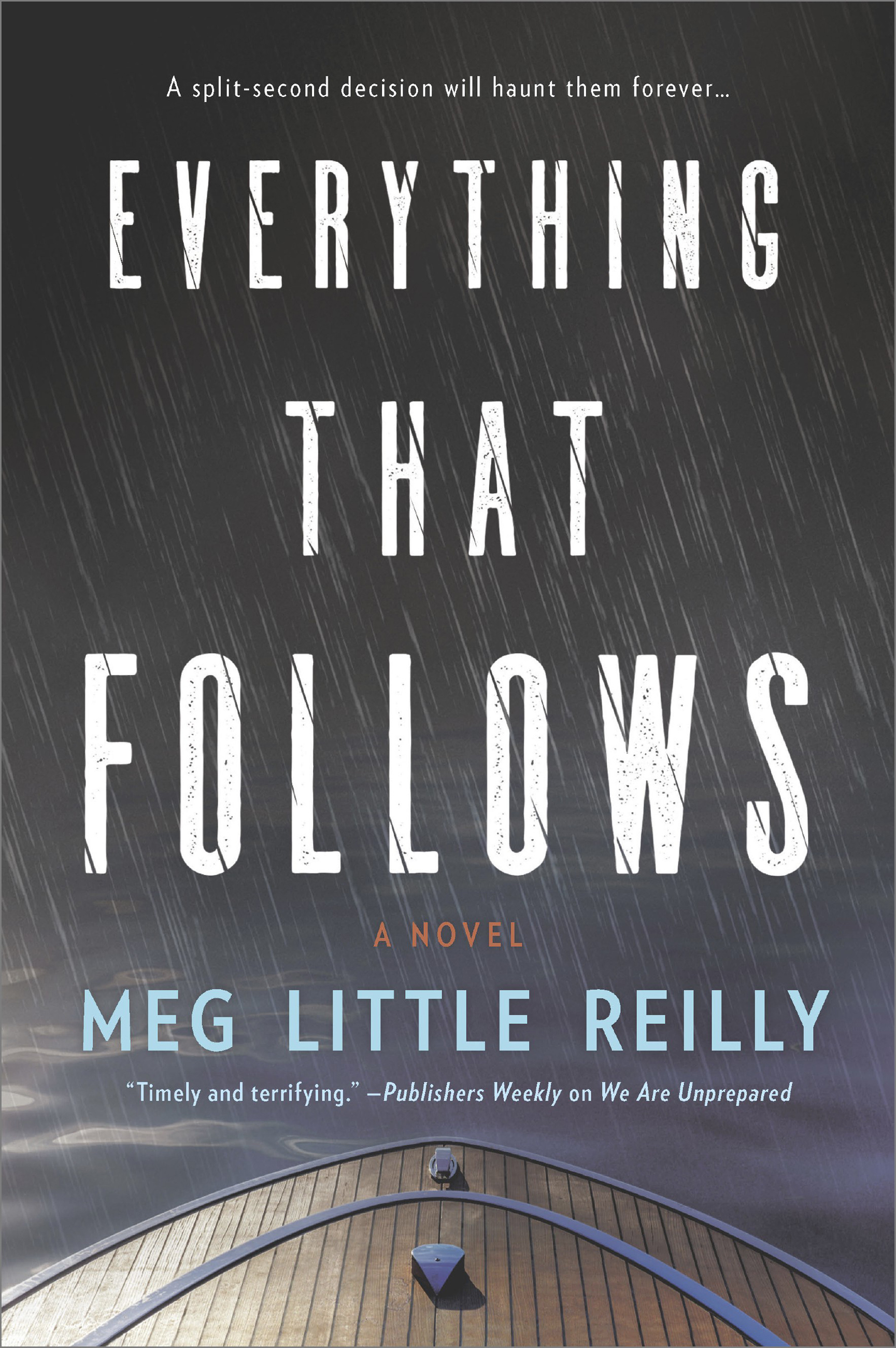 When faced with a moral choice, most of us like to imagine that we’d do the right thing, whatever the consequences. But in the panic of the moment, it’s all too easy for self-preservation to win out. That’s what the characters in EVERYTHING THAT FOLLOWS, Meg Little Reilly’s suspenseful second novel, discover after a tragic accident leads to a man’s death.