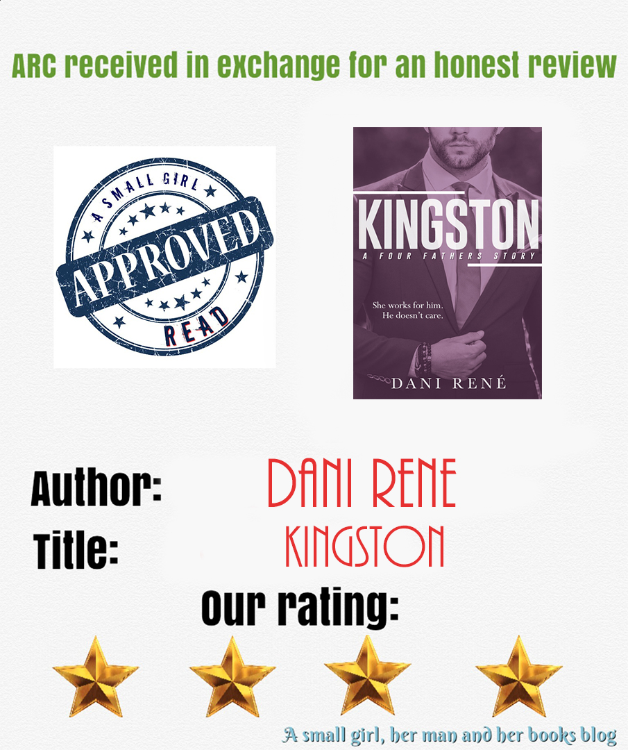 Spanish: Kingston de Dani Rene es el segundo de cuatro libros que forma parte la serie “Four Fathers”, cada libro esta escrito por una autora diferente, J.D. Hollyfield, K. Webster y Ker Dukey. Cada libro es un género diferente y este se adentra en una historia de romance erótico, corto y filthy. Eso sí, hay escenas MFM, pero no propiamente dichas.