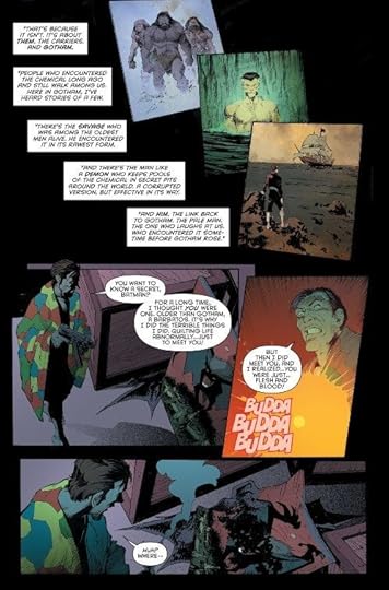 Characters: Holy shit Batman is 'Tower of Babel' Batman again! I know that Rebirth Bats has been becoming more approachable in his own book but it still makes sense that this is happening with what Snyder built with Bruce since 'Court of Owls' this makes sense. Holy shit it's cool. The other cast of characters! Holy holy holy shit! I did not just get a reference to all those characters?! Don't tease me and not follow up on them Snyder!