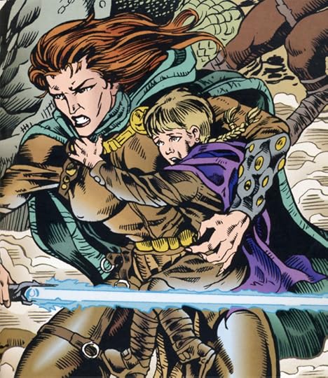 THE GOOD: This is the best volume of Tales of the Jedi so far. The art in the second half, when it counts the most, is great. The action is really fluid and this is the characters look the best they have ever looked. Character growth! Real character development! FINALLY! This is the first time in the whole series where I actually want to follow the characters. Originally, I was just following the story and the lore because the characters were still bland and underdeveloped. But that has finally changed. Ulic Qel-Droma's character, by the end of this volume, really came together. It may have taken a while, especially for somebody who is supposed to be our main character, but I was finally emotionally invested in him, in that I finally want to follow him as a character rather than just follow the things he did. Nomi Sunrider is done even better. She has become stronger as a person and as a jedi, and it was great to see her growth. And finally, the story. The story for this volume was fantastic. It was epic, it was intense. There were extremely high stakes, and I felt the weight of those stakes, especially how it affected the characters. During Dark Lords of the Sith, I rolled my eyes when Ulic decided he was going to infiltrate the Krath. I was like, "great, you guys are doing this Dark Side turn AGAIN???" Especially with Veitch behind it, and seeing how atrocious it ended up being when he put Luke Skywalker through it, I thought this plotline would be horrible and potentially ruin the entire series. But to my very pleasant surprise, the dark side arc of Ulic Qel-Droma was handled very well in this storyline. In Dark Empire, Luke's turn to the Dark Side feels more like a trashy tabloid headline and has no impact on the characters going forward, or even the story arc itself. Carrying over from Dark Lords of the Sith, Veitch and (probably especially) Anderson gave Ulic's initial turn some time to happen naturally. Then, they give some time in the story to explore how Ulic was effected. Finally, and most importantly, there was actual consequences for our characters. Both he AND his friends are changed by this experience. Finally, I'll briefly touch on the inclusion of the mandalorians in this volume. They were badass. They looked cool. Most importantly, it was interesting to see the setup for the Dxun level in Knights of the Old Republic II: The Sith Lords, as well as what I think is the first time in Star Wars EU history seeing an army of Mandalorian warriors all at once.