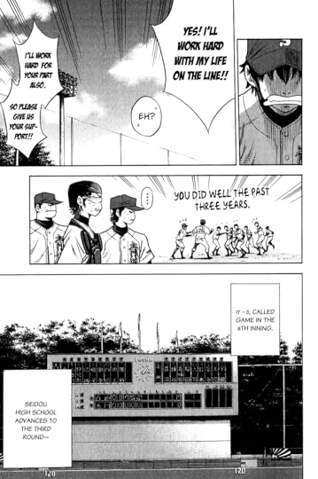 Seido’s done well so far. It’s interesting that this team has Furuya’s number. Sawamura seems to have impressed the coach. I don’t have a lot of faith in him though … 4 stars.
