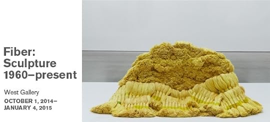 "The largest pieces can be arranged in a variety of configurations, depending on the architectural context, while smaller works possess a cannily unfinished look, as though they are self-destructing in loose threads and open crevices. Throughout, one senses the process-based milieu of '60s Post-Minimalism in which the artist came of age. The amorphous-seeming mound of compacted saffron-colored linen and wool in Banisteriopsis (1965–66)[that's the one in the picture], for example, has affinities with contemporary works by Eva Hesse—who attended Yale, like Hicks, in the '60s."