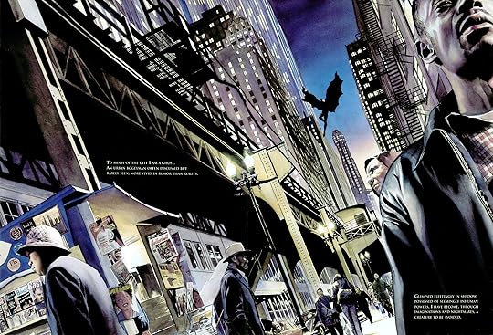 Ok, we already know Alex Ross's art is beyond, but Batman: War on Crime opens with a gorgeous page of Batman crouched between praying angel statuary in a cemetery during golden hour, and it's FRIGGIN STUNNING... Anyway. Batman's story is about how his whole life is about turning his personal tragedy into purpose and how singular his experience was because he had the resources and wealth to not fall into despair, drugs, or crime. His origin story is mirrored here by the story of a young Black boy named Marcus who falls into crime after his parents are killed. Batman saves him from making a huge mistake and works on saving his neighborhood. (Bruce Wayne buys an abandoned factory to create new jobs and opportunities and Batman cleans the streets of the same forgotten neighborhood at night.) "I know I am fighting a war I can never completely win. But there are small victories that encourage me to keep trying. If I can win back one child, there may be hope for many others. If it starts with one person, and then a neighborhood, then perhaps redemption can spread through an entire city, and finally back to me." ♡o(╥﹏╥)o ♥♡