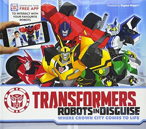 There's something rather wonderful about a book which elicits a "Whoah" from everyone you show it to. Transformers : Robots in Disguse : Where Crown City Comes To Life is a non-fiction media tie-in with one very unique aspect: augmented reality. For those of you yet to come across this, the most overt example of augmented reality within the media recently has been Pokemon Go. Through the usage of an app on their phone, people are able to look through the camera onto a scene and 'see' an introduced virtual object into that scene.