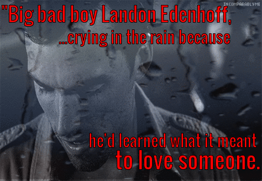 I didn't deserve you, but I'm thankful everyday for you. I couldn't do any of this without you, I wouldn't even want to. But knowing you exist somewhere out there, that you're walking around and breathing and smiling, it makes every moment in here worth it. Thank you for making me a better man. Landon