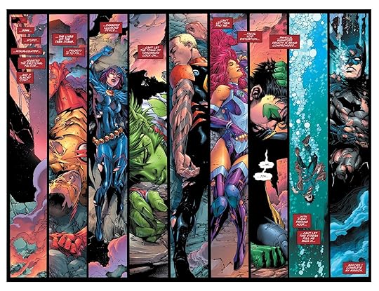 Hay muchas cosas zarpadas en este volumen: los regresos,me encanta ver cómo cambia Damian después de conocer a Jon,se está volviendo más amable, no puedo creer que esté diciendo eso sobre el pendejo ese. La decisión de dejar o no a Jon en el equipo,el nuevo arte fue oro,me gustaría verlo en la run principal de Jovenes Titanes,es mucho mejor.