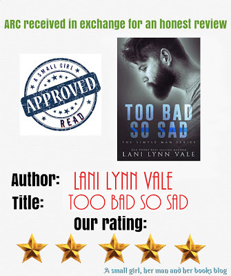 Too Bad So Sad is my favorite Lani Lynn Vale book yet! I don't know if it's because I've been hearing about Tyler Cree and Reagan Alvarez for theist couple of books so I started the book feeling familiar with them or the fact that it had more steamy times, more emotions, and less extreme drama (though, of course the drama was still there - it would be an LLV story without it!), but I devoured this book with joy and with far less skepticism than I've had when reading her previous books. I just love how all of the characters' lives intertwine and I realized while reading that the author's storytelling method is like spending happy hour with a girlfriend who is spilling all the tea on everybody she knows (and she knows everybody AND all of their business) - it is so entertaining and sort of comforting in an odd way. I think Reagan is one of my favorite heroines in the series so far and Tyler Cree is up there with Johnny (Get You Some) and Coke (Ain't Doin' It). My only question is, is the Simple Man series over now, because the preview we get at the end of the book is for her upcoming Bear Bottom MC series? I mean, as long as she keeps the books coming, I'm not complaining, especially since meeting Rome (Tyler Cree's best friend and the hero of the first book in the series, Mess Me Up, out in early September). This book really got me pumped for more of her world! 4 out of 5 wine glasses.