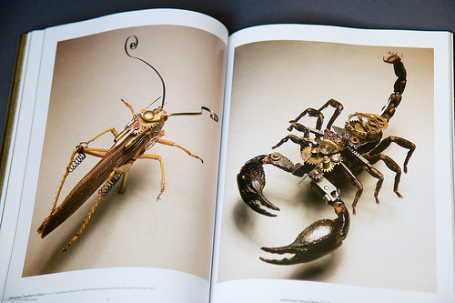 This is one weird and interesting book put together by The Device Gallery. Device Volume 1 is a collection of handmade devices ranging from mechanical steel insects to painted illustrations of robots.
