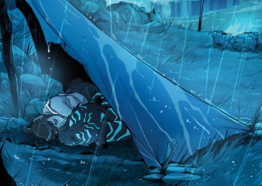 World: The art is fantastic, it looks gorgeous and reminds me of a western take on Ghibli and Miyazaki art. There are hints of Nausicaa in the wall paintings and books and Rook and her journey looks straight ripped from Princess Mononoke so yeah, you know what they say about imitation and flattery. The world building here is choppy at best. There are flash backs but the world is almost constantly dream like and not and the transitions in the art is not clear so when there is no info dumping or context set up reader do feel lost in the world. There are snippets of info here and there and in the end you do work it out a bit but the lost feeling is not a welcome one, I didn't feel swept away into another world I just felt like I was jerked around or the writing wanted to withhold things to make it more interesting but it just lost it's magic more than anything. I had a similar feeling with 'Monstress' also but I felt it was a bit more here. Of course you can say that Ghibli world building is mostly visual and readers and viewers are taken on a journey and the creative team possibly was trying to do the same thing here, but here it felt choppy.