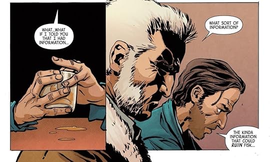 But neither the start nor the beginning make sense. Old Man Logan is drawn to hurting Fisk because Fisk being elected mayor feels to him like the backstory to the Mark Millar Old Man Logan? No?