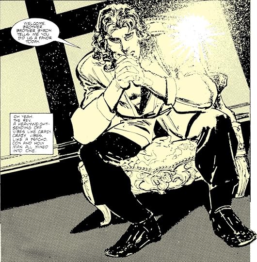 Punisher goes up against mob bosses, drug cartels and religious zealots accompanied by his constant pretentious hard-boiled voice-over. “Tony wants to kill me when he can. Revenge, I understand.” Oohh, who’s a big bad boy? You’re a big bad boy! (It reminds me of the voice-over in Kraven’s Last Hunt btw.. is it a late 80s thing, this gritty chopped way of speaking?)
