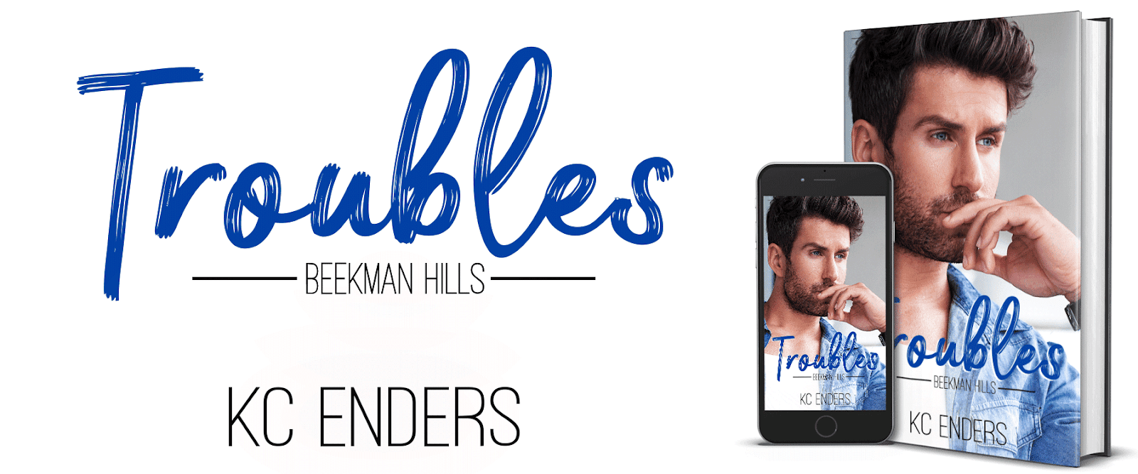 Lisbeth Rittenhouse has too many hits in life to do anything else but keep her head down. Her longtime boyfriend broke her heart, while her family treats her like absolute garbage. Now, all she wants to do is graduate college early, and so she stays busy between classes, and work. Photographer Aidan Kearney leaves Ireland to get away from the pain of losing his brother, and ends up settling down in the small town of Beekman Hills, New York, getting a job as a bartender. He never believes that he would meet anyone like Lis there. But he wants her, while she's trying to run from him, so who will win in the race for love? Troubles is a story that I couldn't believe was a debut book from the very talented K.C. Enders, as I couldn't turn the pages quickly enough. The angst levels are sky high, and I'm still emotional, even though I finished it yesterday. Lis has had too much happen to her by her family, and I wanted to choke all of them out for their actions, & hurtful words. Aidan is a good guy dealing with tragic set of circumstances, so I really wanted them together from the beginning. Did he makes mistakes, yeah a few, and was Lis too scared at times, very much so, but together they just fit. And the colorful cast of secondaries absolutely gave me a lot of relief from the angsty goodness, by making me laugh throughout. And the icing on the cake is the twists that had me cursing like a sailor aboard a submarine. I CANNOT WAIT to see what this new author comes out with next, and HIGHLY HIGHLY HIGHLY RECOMMEND TO ALL!