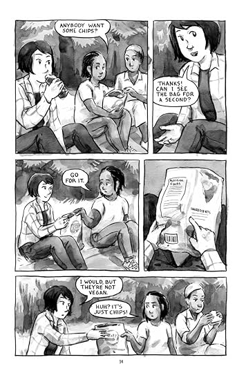 So this is a quiet little story about facing her own white privilege as she meets a range of diverse kids working in the program. Not all that much happens, really. The story spends a little time without much of a point about her hitting on an older guy in charge, and about having a kid say something (sexually) rude to her, which is related to gender issues that her mother had experienced, leading to Hazel's homeschooling. But much of it seems pretty tame, not earth-shaking. I like Hazel as she depicts herself, and the art style is very inviting.
