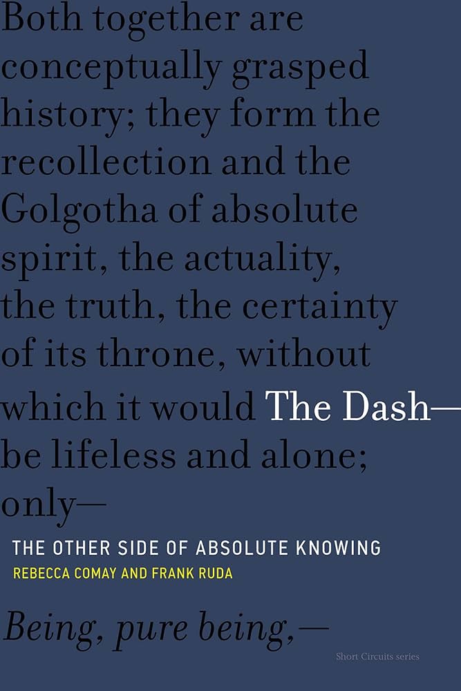 The Dash is organized around a pair of seemingly innocuous details. Hegel punctuates strangely. He ends the Phenomenology of Spirit with a dash, and he begins the Science of Logic with a dash. This distinctive punctuation reveals an ambiguity at the heart of absolute knowing. The dash combines hesitation and acceleration. Its orientation is simultaneously retrospective and prospective. It both holds back and propels. It severs and connects. It demurs and insists. It interrupts and prolongs. It generates nonsequiturs and produces explanations. It leads in all directions: continuation, deviation, meaningless termination. This challenges every cliché about the Hegelian dialectic as a machine of uninterrupted teleological progress. The dialectical movement is, rather, structured by intermittency, interruption, hesitation, blockage, abruption, and random, unpredictable change—a rhythm that displays all the vicissitudes of the Freudian drive.