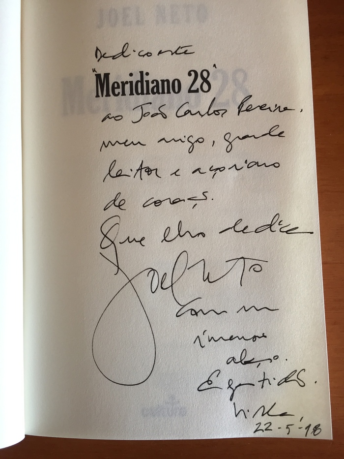 Em “Meridiano 28” temos um conjunto de histórias entrelaçadas, de vários livros dentro de um único livro, em torno de alguém que, um pouco perdido na vida, vai tentando juntar as pontas soltas de outras vidas meio perdidas também, desvendando mistério após mistério, encontrando-se a si próprio a pouco e pouco, e cujas respostas à sua busca se encontram muitas décadas atrás, no palco de uma ilha dos Açores em plena Segunda Guerra Mundial, onde alemães, ingleses e americanos conviviam sem animosidade. “Uma história não tem princípio ou fim; uma pessoa escolhe arbitrariamente um momento da experiência a partir da qual olha para trás ou para a frente.” Esta citação de Graham Greene, entre várias outras usadas pela personagem principal deste romance, estabelece o que tantas vezes faz diferir as perspectivas que cada leitor tem na leitura do mesmo livro. Ou ainda de um mesmo leitor face ao mesmo livro quando lido em alturas diferentes da sua vida. “De resto, e tanto quanto lhe parecia, a literatura era aquilo que convidava o leitor a escrever também. Um corpo vivo, metamorfoseante, que já não podia ser agora o que fora há cinco minutos. Muito mais daquilo que se conta, a literatura estava naquilo que não se conta, e só um escritor saberia exactamente o que não contar.” É essa a magia da literatura, reforçada ainda pela mestria do escritor, pois “quando um homem acredita na história que conta, quem a leia corre o risco de acreditar também.” Todos estes ingredientes fazem parte da receita literária deste livro, sendo o leitor cativado por um suspense crescente, lançado em pistas que adensam ainda mais os mistérios, deixado à solta para imaginar os mais diferentes tipos de desenlace, iludido por revelações que se revelam enganadoras, caindo por fim na sofreguidão de acabar a leitura o mais rápido possível, tropeçando ainda em mais algumas falsas deduções para se deparar com um desenlace que ainda o vai deixar a pensar muitos dias sobre este romance, tantos são os mistérios não completamente esclarecidos, não obstante o leitor cair em pé. Em termos do enredo, tudo por causa de uma mulher, ou melhor, do que um homem é capaz de fazer por causa do amor a uma mulher “às vezes penso que, quanto às mulheres, escapa-me sempre qualquer coisa. Algo de assustador e cativante. Falo com uma mulher e sinto-me a mergulhar no desconhecido. Dá-me ideia de que com a maior das facilidades poderiam destruir o homem diante delas. E, no entanto, é tão maior o rasto de destruição deixado atrás de nós.” O sub-título “o poder redentor das grandes histórias” faz juz ao seu conteúdo. Com uma qualidade de escrita esmerada, a que o autor já nos tinha habituado em “Arquipélago” e “A Vida no Campo”, em “Meridiano 28” Joel Neto presenteia-nos, além de um registo histórico cuidadosamente tratado sob a forma de ficção, e outro original de teor diarístico, com uma ainda maior profundidade na descrição da fragilidade e perenidade do ser humano, misteriosos para os seus semelhantes tal como para si próprios, ancorados nas suas pobres convicções e vítimas das suas ilusões.
