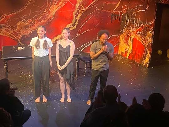 Curtain call for Tara Sky (Kristina), Emily Anne Corcoran (Julie) and Jamar Adams-Thompson (Jean) after a performance of Polly Stenham's "Julie" by Icarus Theatre at the Tarragon Theatre Extraspace, Toronto, Canada. Photo source: own photo.