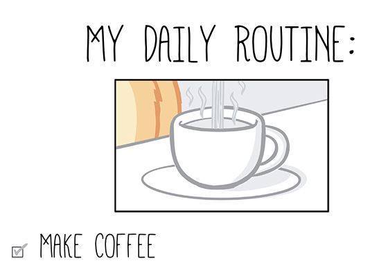 Half of it is related to diet and exercising, the other half to various every day topics. Most are repetitive and I didn’t like much the drawings either. Just two of them made me smile and here they are: