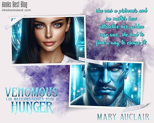 I received an Advance Reader Copy for VENOMOUS HUNGER (Eok Warriors, Book #2) written by Mary Auclair and voluntarily reviewed this book. Aliena was a rare human female, a free human, but now very sick and dying. She was left on a mountain top by her own people with little hope for survival until she was found by a discraced-Eok-warrior-turned-pirate and opportunist named Kamal, who brings her to his ship and nurses her with alien medicine and technology back to health. But being near her brings up his Mating Venom, and he is at pains to avoid her until he can no longer resist her. This is a book with a strong political thread with the remaining humans left at her colony, still in near-desperate hiding, holding onto their freedom, as well as the evil doings of Minister Knut. We have Aliena who is fiercely loyal to her people, doing all she could to keep them safe while searching for the leader of their colony, her “Uncle” who was missing, not quite believing Kamal’s intentions to help her even though her own cousin Rose (from Book #1) is now mated to a fellow Eok warrior.