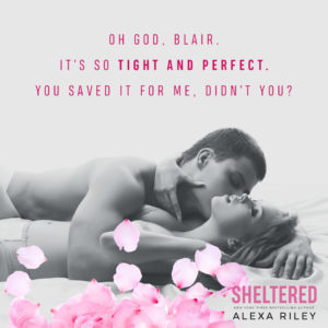 If you want a swoon worthy alpha who will do anything in the world to keep his love happy and safe, then you do not want to miss out on Sheltered. Ryker and Blair will steal your heart!