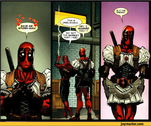 To summarize: Their relationship gets progressively less antagonistic as DP becomes more of a good guy and Spidey gradually warms up to him, DP becomes flirtier, more of an unapologetic Spider-Man fanboy and less “no homo” with time (thank god), and the crossdressing gets more frequent. Good.