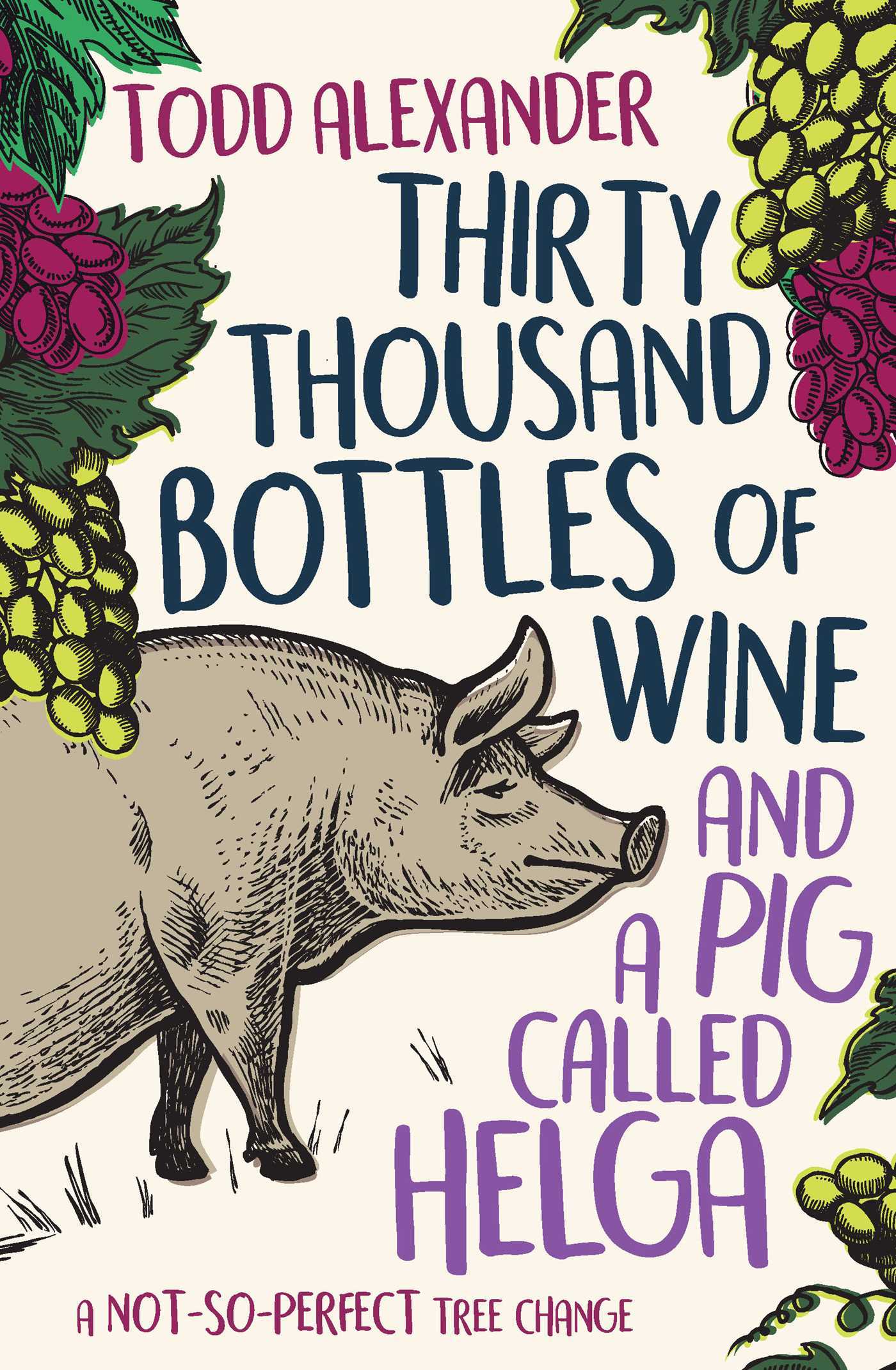 Thirty Thousand Bottles of Wine and a Pig Named Helga is the story of Todd Alexander’s mid life tree change with his partner, Jeff, abandoning inner city living and highly paid careers, for a hundred acre farm in the Hunter Valley, to grow grapes, olives, and run a five star B&B.