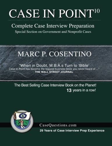 The Wall Street Journal calls Case in Point the MBA Bible! Cosentino demystifies the consulting case interview. He takes you inside a typical interview by exploring the various types of case questions, and he shares with you the acclaimed Ivy Case System. It will give you the confidence to answer even the most sophisticated cases. The book includes dozens of strategy cases, with case starts exercises, 21 ways to cut costs -- plus a special section on Federal and nonprofit cases.!