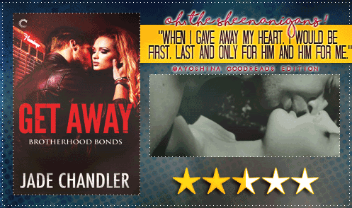 Jade Chandler is a new author to me. I really enjoy reading MC books and I enjoyed this one as well. It was a gritty book that was dark and twisted. It was a little slow to start but then it went off and damn did it ever. I haven't read the other book in the series but I was able to follow along with it just fine. Get Away is book three in the Brotherhood Bonds series. This is a well-rounded read.