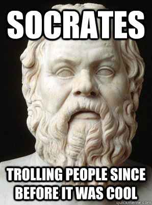 Was Socrates, great man as he was, not actually one of the supreme mindfuckers of all time (in the positive sense, of course)? He went around the marketplace questioning people's ordinary beliefs about things, showing them that they were ignorant of even their most basic concept: he radically undermined their confidence, their sense of intellectual security (and rightly so). (pp. 62–3)