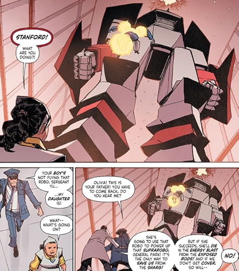 Still, when the plot is all action, it's fairly easy to catch on. Someone needs to power up the supramech and the only way to do that is to sacrifice a lesser mech! Characters trying to sacrifice themselves gets drawn out through four increasingly tiresome issues. Quick read, decent action, bland conclusion. The last handful of pages would probably have been real touching if I was more invested in this series.