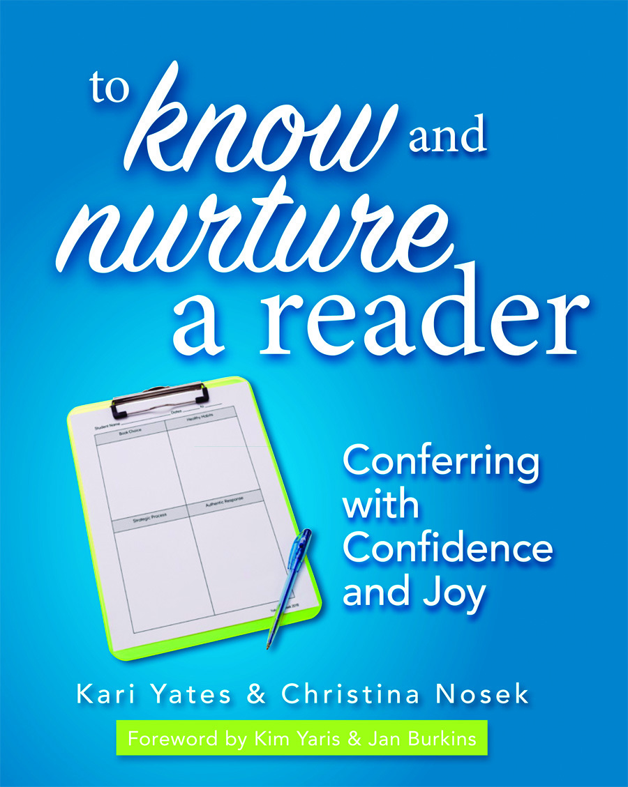 Conferring with students about reading allows for clearer access to one-on-one, in-the-moment teaching and learning, yet it can feel intimidating or overwhelming. Kari Yates and Christina Nosek want to help. Here they have provided practical, reflective, student-centered teaching moves that you can use to develop an intentional, joy-filled conferring practice.To Know and Nurture a Conferring with Confidence and Joy is a get-going guide to conferring. The book includes step-by-step guidance that is also considerate of time and other classroom challenges, as well The book breaks conferring into manageable chunks with specific goals for knowing and nurturing young readers, then puts all the pieces together with various classroom scenarios and examples. The tools, examples, and ideas in this book make conferring something every teacher can do right away and master with continued effort and practice.