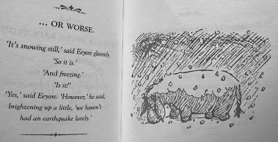 Oh, Eeyore! He is always determined the see the worst in everything - or at least be prepared for things to go bad. A glass half empty kind of donkey, Gloom & Doom for Pessimists shows the highlights - or should that be lowlights? - of Eeyore's many complaints and pessimistic observations. This one had me smiling alone with resigned amusement.