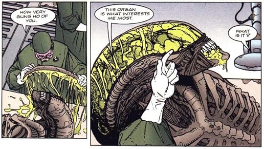 Another mad scientist conducting experiments on Aliens and humans story, but this one is so well done. Woodring amps up the horror. It's really messed up. You can see how this influenced Prometheus and Alien: Covenant, both with the character of David and all the insane experimentation stuff.