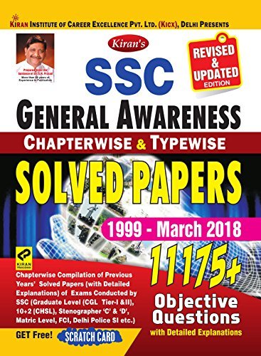 This is an eBook.Kiran’s SSC General Awareness Chapterwise & Typewise Solved Papers 1999 March 2018 English 11175+ Objective Questions With Detailed ExplanationsGet Scratch Card free worth of Rs 400, with this Book , Content of Scratch Card - Get total 4400+ Questions for Online Practice ,-Chapterwise Online Test 1000+ Questions, Mock general Awareness test of 25 Questions each total 400 questions ,CGL and CHSL Complete Mock online test 1000 Questions ,CPO complete Online tests 2000 QuestionsCONTENTIndian History World History Indian Art & Culture Indian Polity & Constitution Physical Geography Geography of India World Geography Indian Economy Economics Physics Chemistry Biology Environment & Agriculture Computer & IT Discoveries & Inventions Science & Technology Honors & Technology Books & Authors Important Decades, Years & Days UNO, Other International & National Organizations Sports National Events International Events Miscellaneous Cencus : 2011