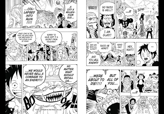 So to the furries. I don't have anything against animal people but uhhh.....with how Oda generally draws "regular" feminine characters (so not your Sugars or Kokoros) I'm not here for it. Meeting a dog girl wearing Nami's bikini top as one of our introductory characters to the Minks is a lot. On the upside Zou is super cool in terms of scenery, our crew is mostly reunited, and the Minks have an annoying speech pattern but it isn't as annoying as the baby talk the Tontattas used in the translation I read. Plus I'm super intrigued about where the plot is going to go from here!