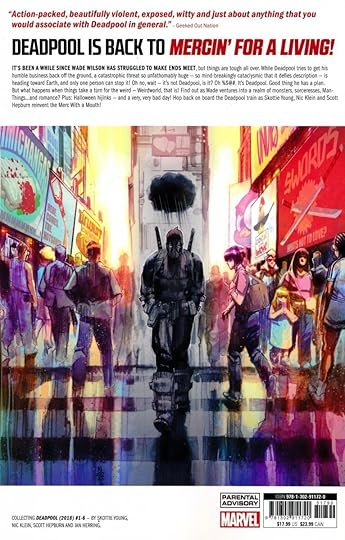 Mixed thoughts: The story is... I dunno. On one hand it is kinda fun but on the other hand some parts of it feel too ridiculous even for Deadpool. The art is mixed. Sometimes good, sometimes bad, mostly meh. The humor. So I usually find Deadpool funny and Young usually writes good humor but not every joke in this book really lands well. Sometimes it’s hilarious but other times it feels like they’re trying to cram at least one joke into every panel even when there’s not a good joke to make so some of them end up being a bit cringe-worthy... Really a mixed bag in the humor department.