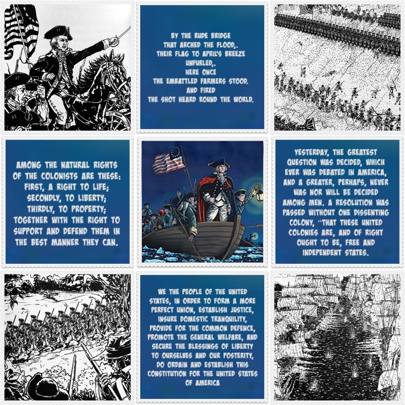 The Sons Of Liberty Among the natural rights of the Colonists are these: First, a right to life; Secondly, to liberty; Thirdly, to property; together with the right to support and defend them in the best manner they can. The Shot Heard Round The World By the rude bridge that arched the flood,. Their flag to April's breeze unfurled,. Here once the embattled farmers stood. And fired the shot heard round the world. Bunker Hill Powder is scarce and must not be wasted.Do not fire until you seethe whites of their eyes. Building The Continental Army We have too many high sounding words and too few actions that correspond with them. The Invasion In Canada Arnold's expedition has been marked with such scenes of misery that it requires a stretch of faith to believe that human nature was equal to them. A Declaration Of Independence Yesterday, the greatest question was decided, which ever was debated in America, and a greater, perhaps, never was nor will be decided among men. A resolution was passed without one dissenting colony, “that these United Colonies are, and of right ought to be, free and independent States. The Empire Strikes Back Crossing The Delaware The Marquis de Lafayette Saratoga Valley Forge Courting France The Legend Of Molly Pitcher "Mad" Anthony And The Virginia Hercules The Culper Ring Three may keep a Secret, if two of them are dead. The War On The Frontier Not Yet Began To Fight Deborah Sampson God Helps Those Who Help Themselves Butcher Tarleton Yorktown