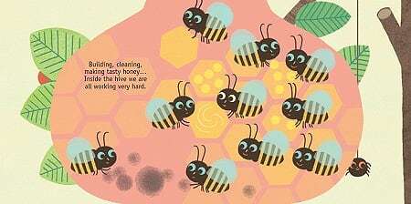 Bee is a very cute book for small children. The colorful pictures have a lovely retro touch and two or three sentences per spread describe the life and work of bees in child friendly language that is easily understood. A great book to teach children about nature!