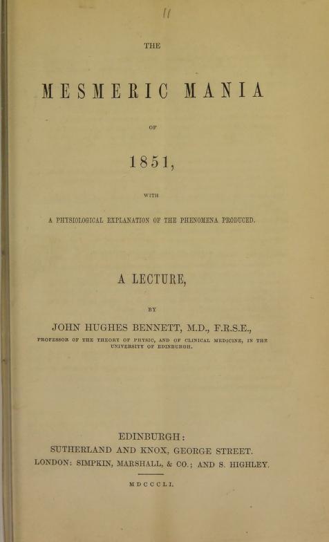 DURING the present year (1851), society in Edinburgh has been greatly agitated by a delusion that a mysterious force is being directed by particular individuals.