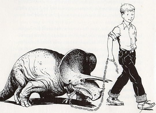 I loved, loved, loved this book as a boy. The triceratops was (and still is) my favorite dino, and I first read this book on the family farm I stayed at every summer. My primary chore back then was to take care of the chickens, so the idea that a chicken would lay an egg that would hatch a triceratops felt like it was written just for me.