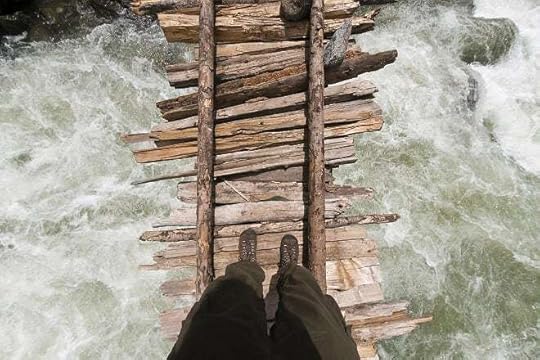 ‘I remember that Dharkey held one of my hands, and another trader held the other. I didn’t look down. I knew if I’d fallen into the river, I would have just been swept away.’ This is not a bridge from Nepal, but close enough to get the idea!