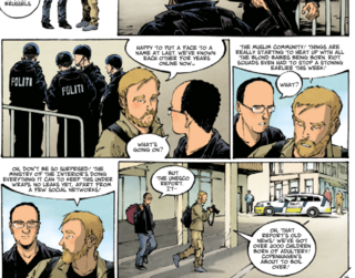The graphic novel "The Danes" is a piece of speculative fiction. It is mainly set in Copenhagen, Denmark, with mention of similar events happening in other Western European nations. The plot starts off with a young black, Muslim immigrant giving birth to a blond, blue-eyed baby girl. To protect her from her husband's family's wrath, the social worker from the hospital conducts a paternity test, and to the family's dismay the baby is, in fact, his. This seems to be the case with many babies born across Denmark and other European countries, and with racial, cultural, and political tensions raising because of it, this quickly becomes an issue in the European Union and a lot specialists become involved.